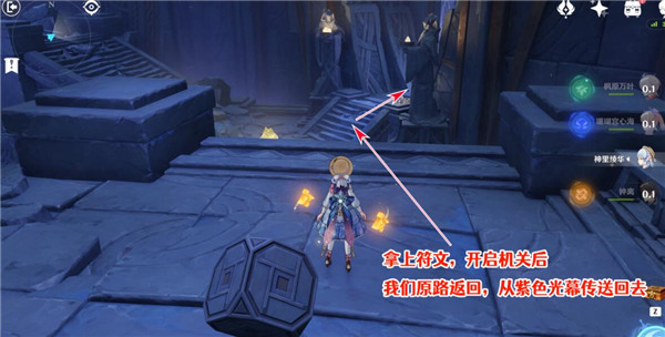 开启机关后我们原路返回,从紫色光幕传送回去。