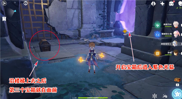 上去之后就可以看到第三个宝箱了,开启宝箱之后我们进入紫色光幕。