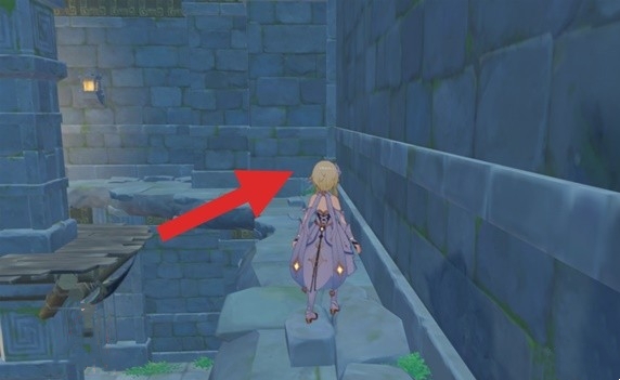 3、爬上二楼后,我们沿着墙壁向左走,一直走到墙角。