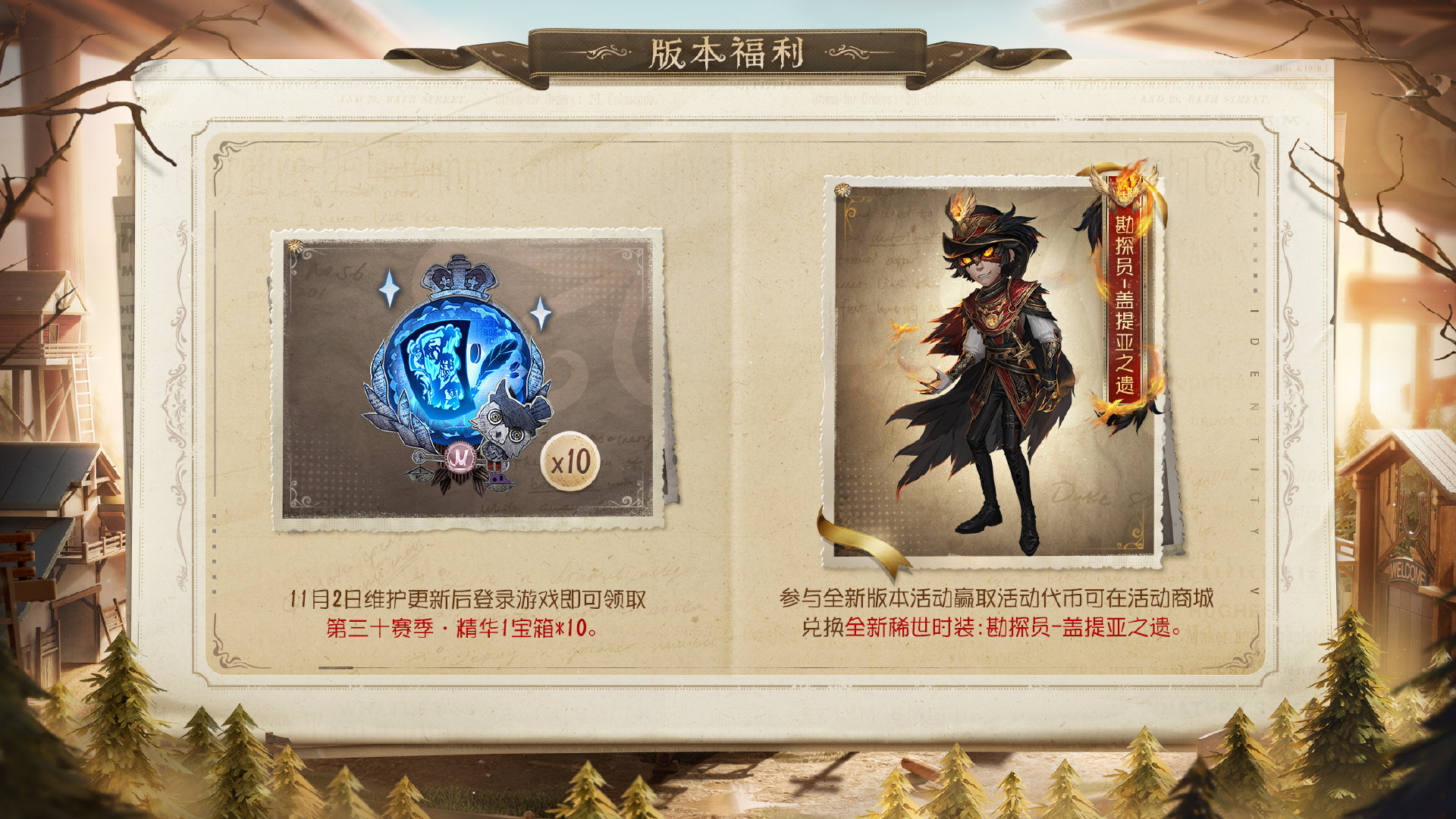 第五人格新赛季即将在11月2日更新,全新的活动即将上线噢,小编看到不少庄园访客在问勘探员的金皮的获取方式了,果然大家都看到爆料啦,小编当然也为大家整理好勘探员盖提亚之遗金皮的预览和获取方式了,大家赶紧点开文章看看吧。