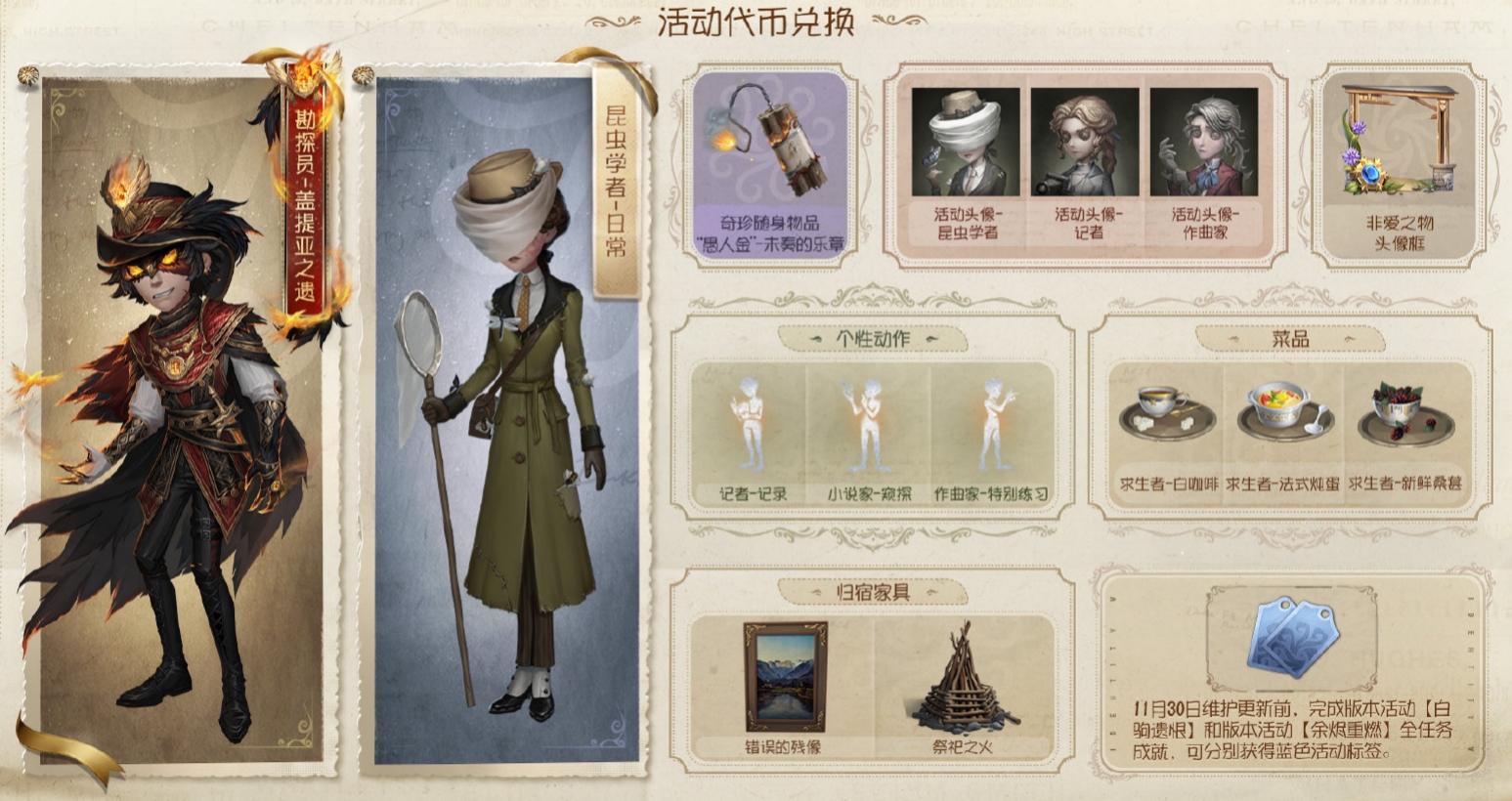 大家可以使用活动代币在商店里兑换【稀世时装】勘探员-盖提亚之遗、【独特时装】昆虫学者-日常、【奇珍随身物品】“愚人金”-未奏的乐章等物品噢!