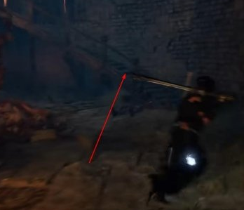 2、我们在楼梯向前走,看到缺口之后往左转。