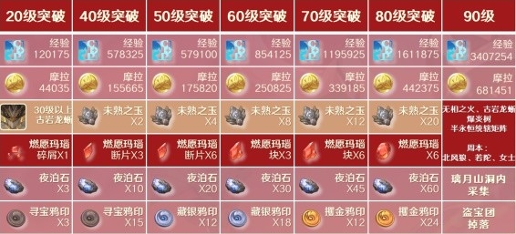 1、烟绯角色等级材料
