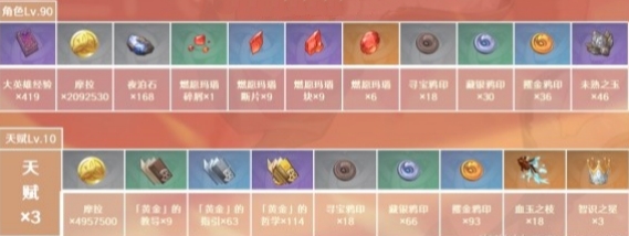 2、烟绯天赋等级材料