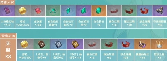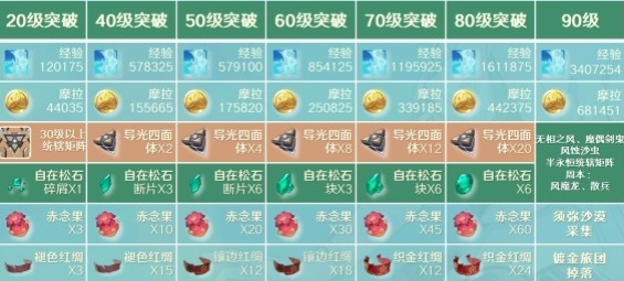 1、珐露珊角色等级材料