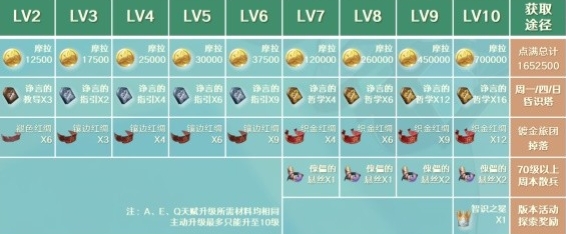 2、珐露珊天赋等级材料