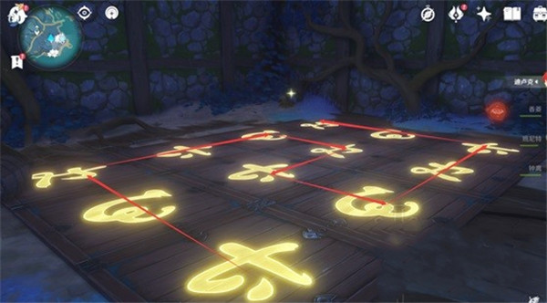 3、根据任务要求来到小木屋,具体解谜顺序如图所示。