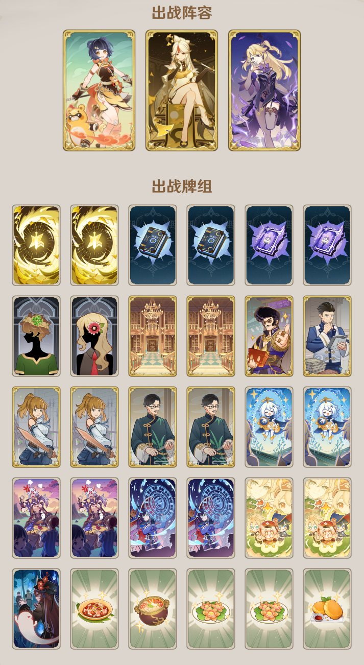 角色牌:凝光、香菱、菲谢尔