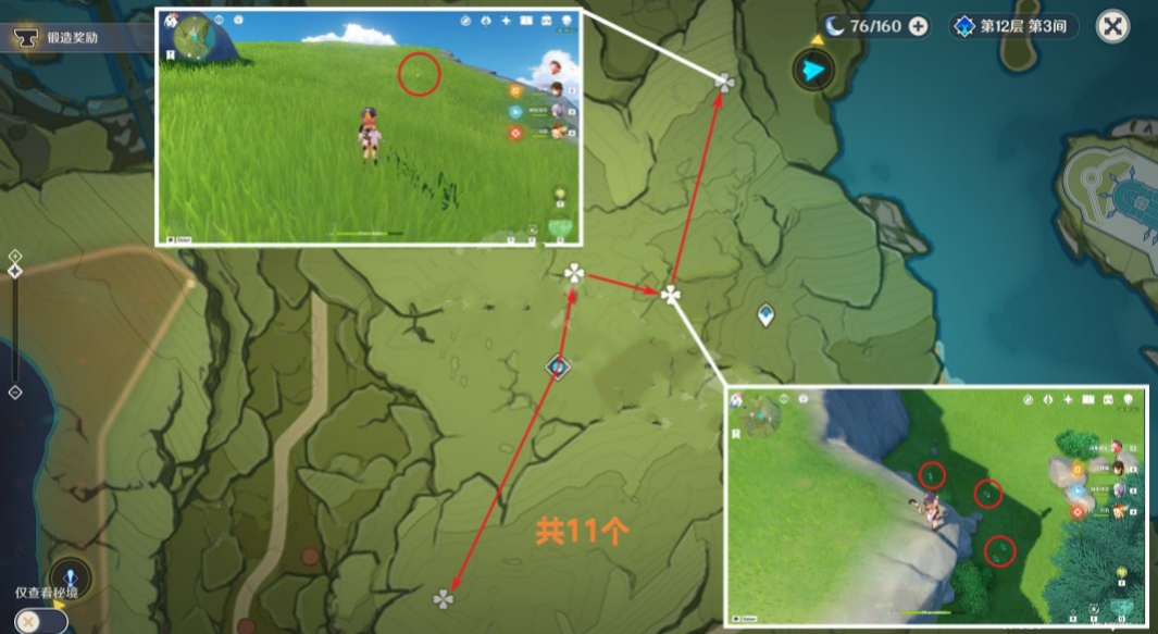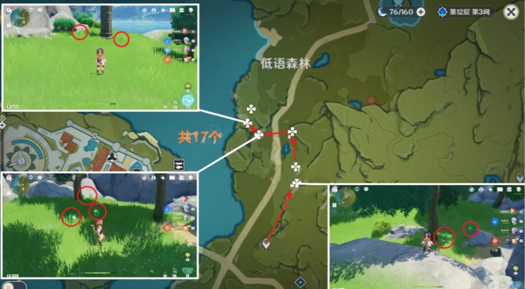 低语森林的采集路线短,一共可以采集17株。