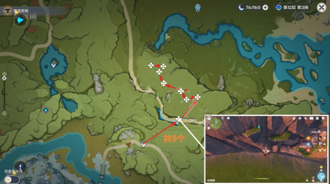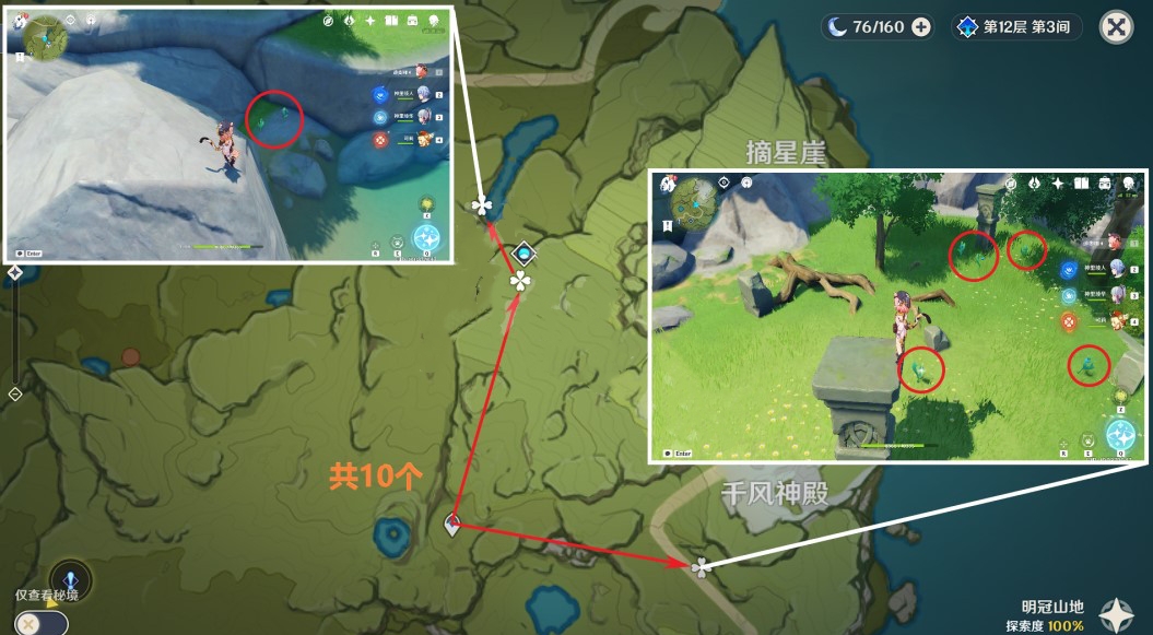 千风神殿的路线比较长,一共可以采集10株。