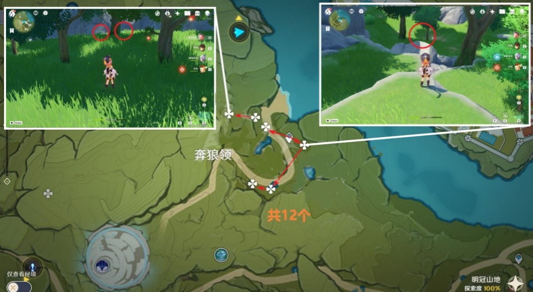 需要爬小山,一共可以采集12株。
