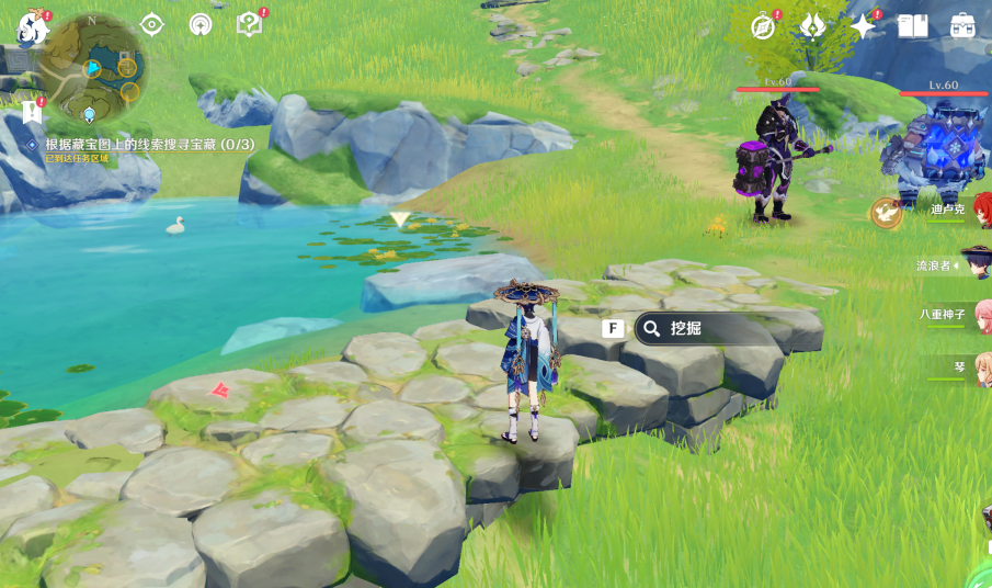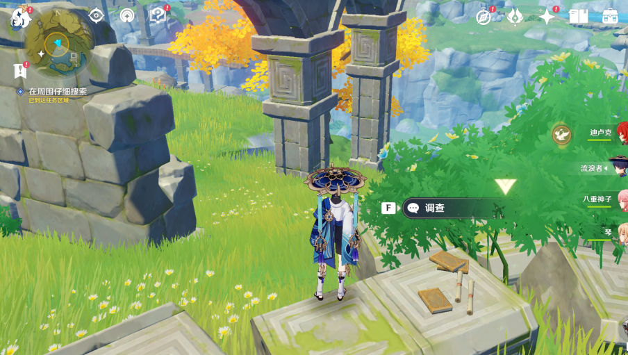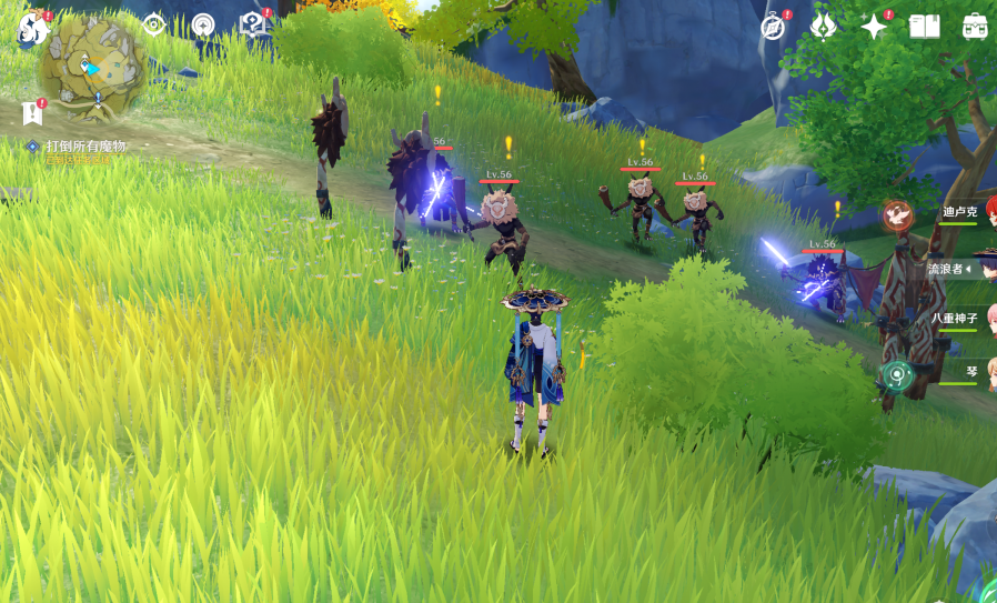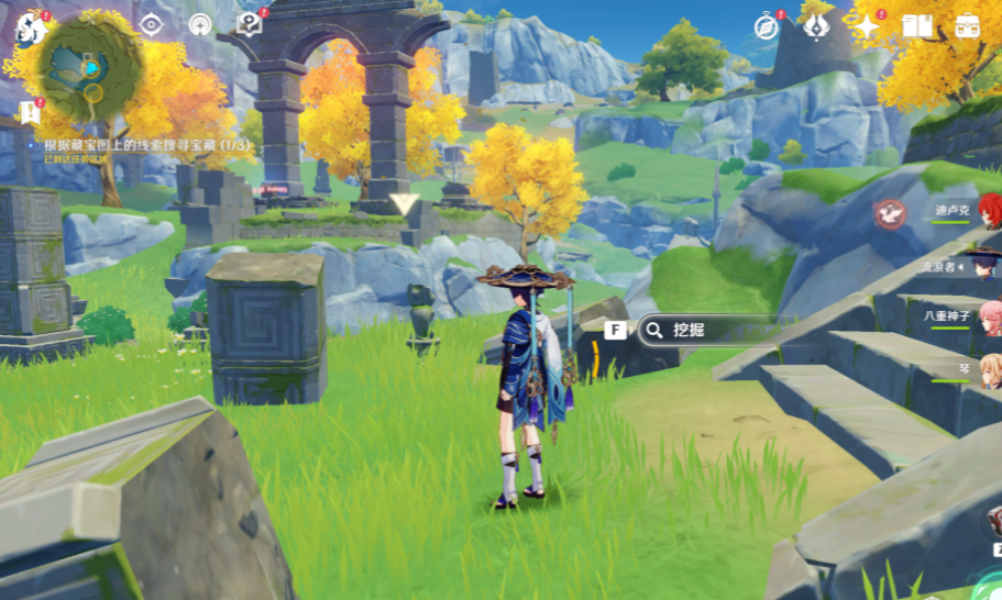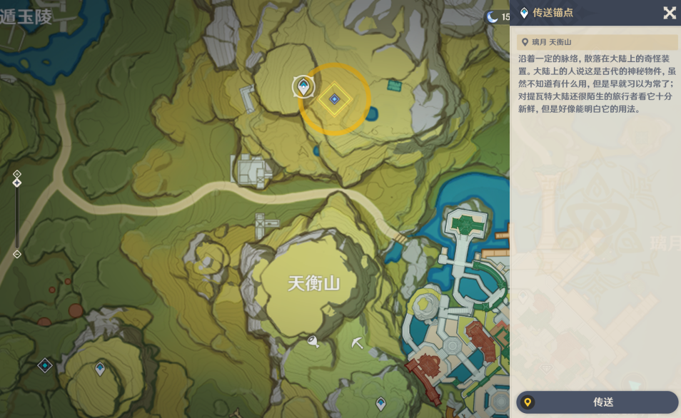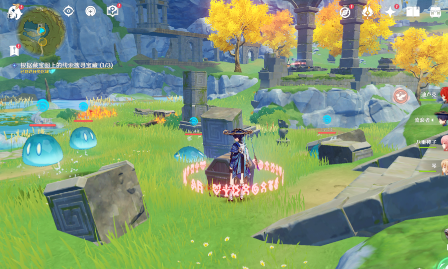 2、根据任务要求,我们从天衡山北部的传送锚点来到任务地点打败丘丘人,获得藏宝图。