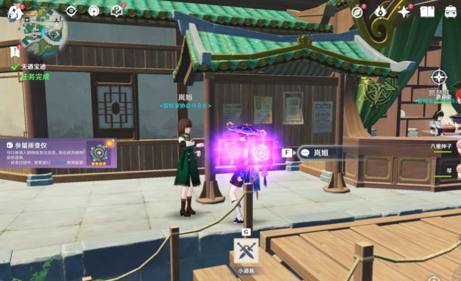 1、我们来到璃月的冒险家协会,找岚姐接取天遒宝迹任务。