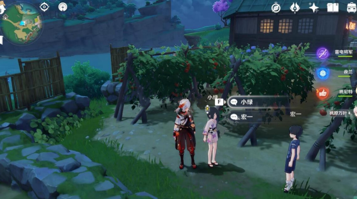 1、我们传送到稻妻城外的锚点,和NPC小绿对话接取诸国游记任务。