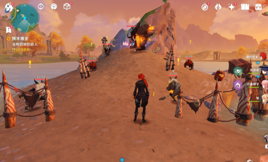 2、根据任务要求调查荻花洲东侧的浅滩,击败丘丘人。