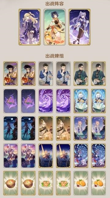 开局有刘苏牌则必留,双雷共鸣牌、莫娜星天之兆、小派蒙三选二,其他的立本、诺艾尔等牌看情况选择;