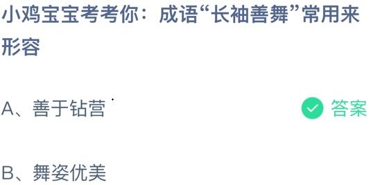 【问题一】:小鸡宝宝考考你:成语“长袖善舞”常用来形容: