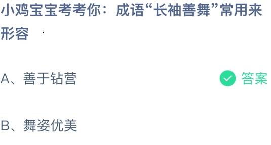 长袖善舞常用来形容什么?长袖善舞是什么意思?这是10月29日支付宝蚂蚁庄园的问题之一,今天就为大家带来了相关的说明,不知道这个成语含义的就可以通过下面的内容来了解一番。帮助需要的用户了解到更多的知识。