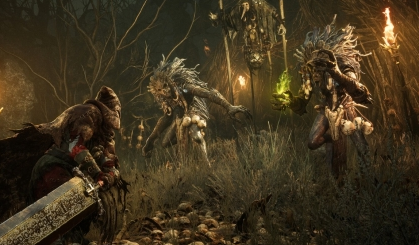 1、我们先来到沼泽,找到第一个怪旁边的大篝火。