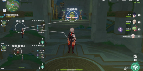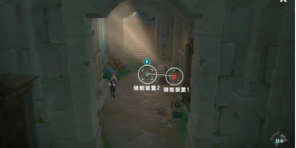 2、我们切琳妮特,用战技攻击储能装置1启动它,这样就能拿到门里面的储能装置2了。