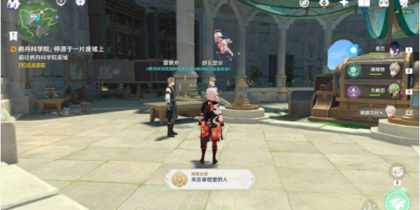 11、最后传送回新枫丹科学院,和NPC雷蒙多对话后获得成就夹在章程里的人。