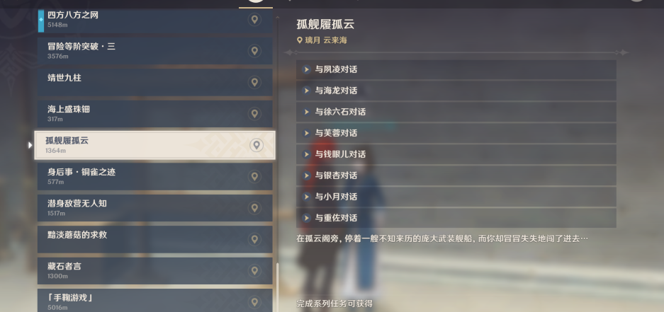 原神的大世界里究竟有多少世界任务呢?小编今天就给大家带来死兆星号相关的孤舰履孤云任务吧,有不少旅行者在问,孤舰履孤云任务要怎么触发呢?小编这篇文章就带大家看看孤舰履孤云的触发方法和完整攻略吧。
