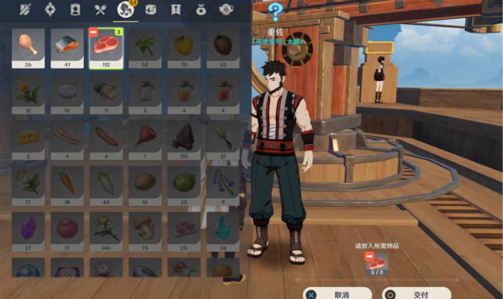 4、我们将三份兽肉交给大副NPC重佐。