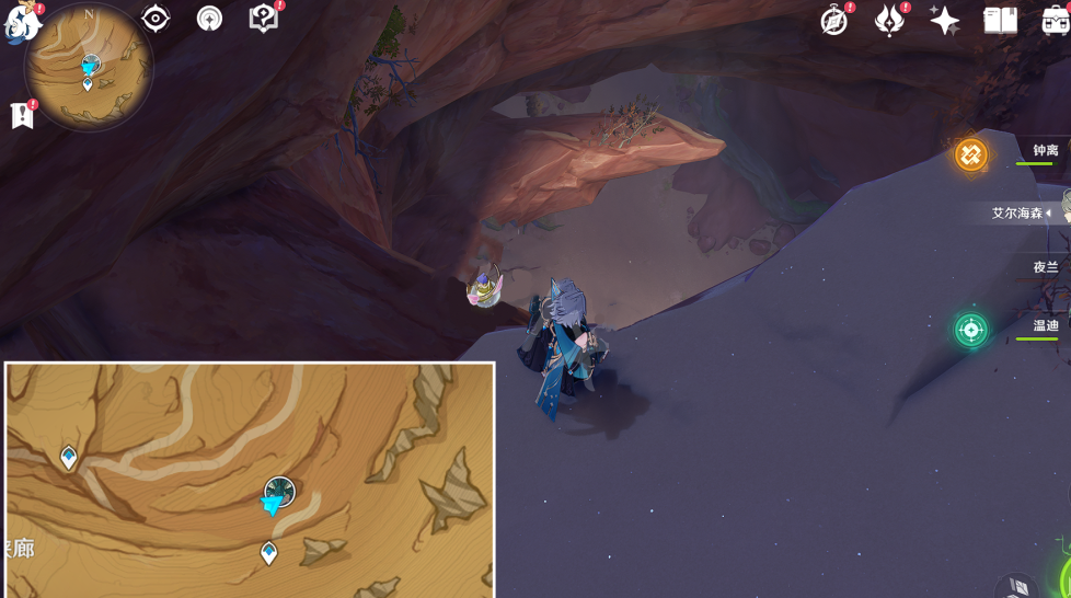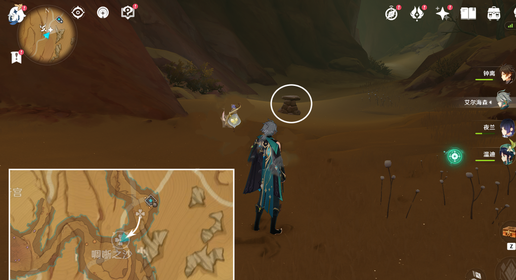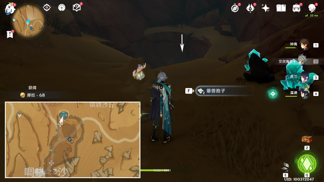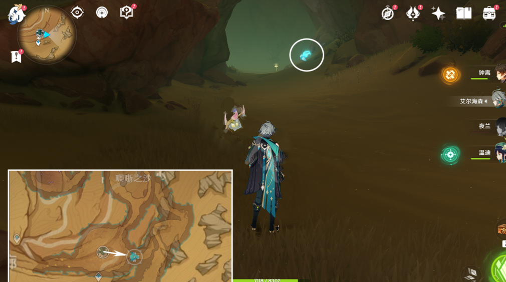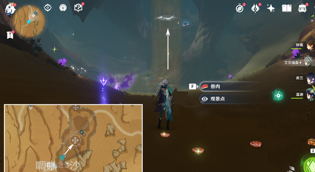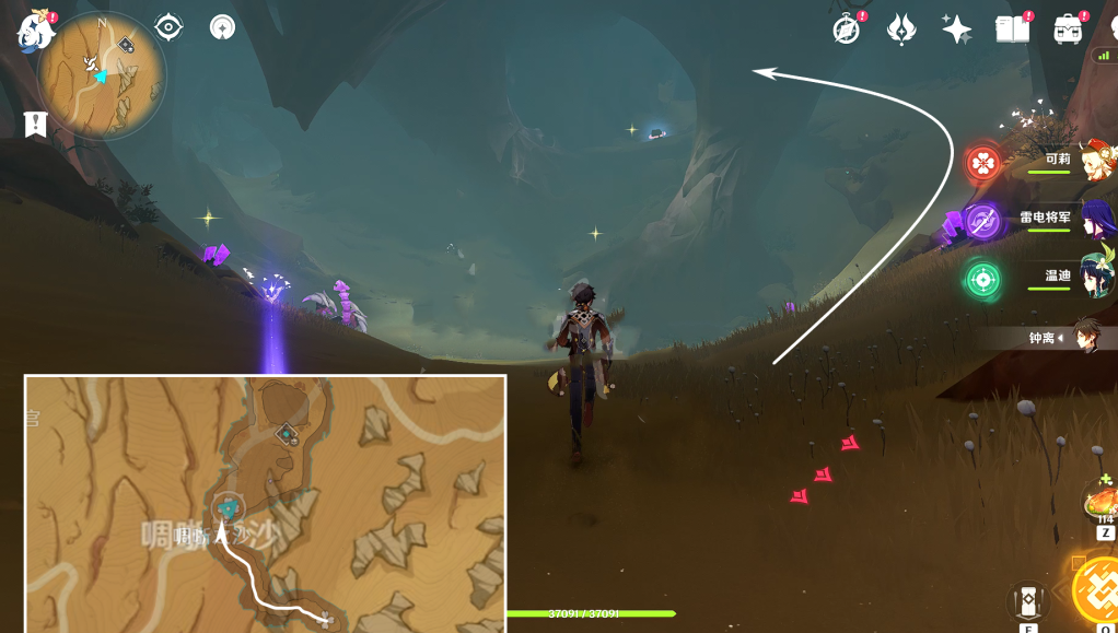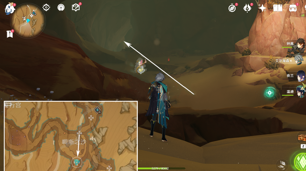 1、如图所示我们从沙虫头顶的传送锚点出发,从这个坑跳下去。