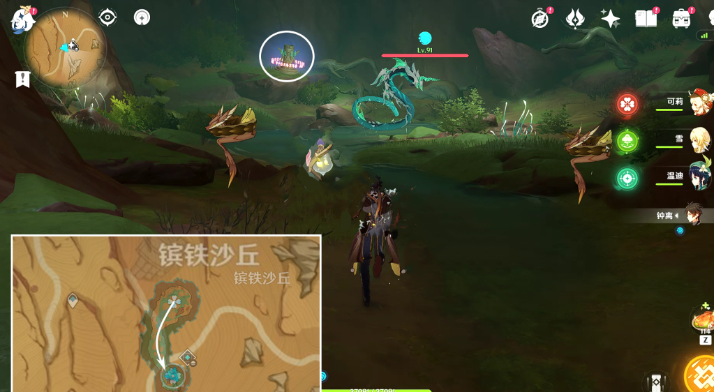 7、一直顺着小路走到尽头,把这些怪都打掉开启风元素方碑,就会出现巨大的风场。