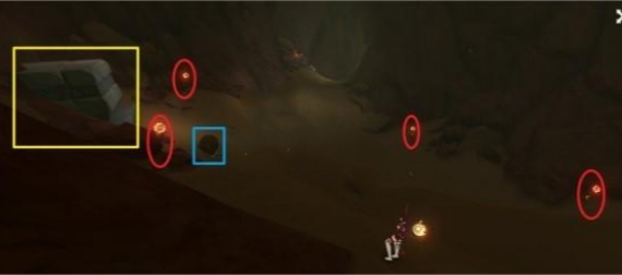 4、一直向里走,我们走到断崖处,前面有两个四叶印,右边的怪可以先打完;