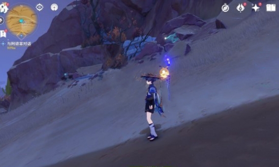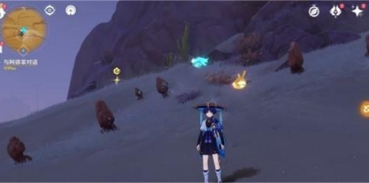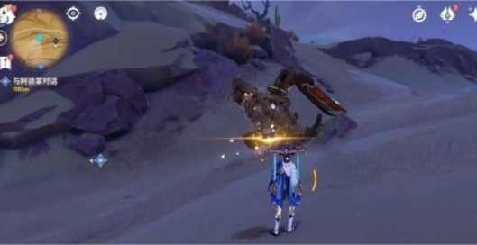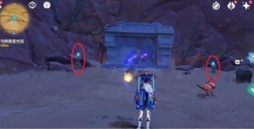 3、首先是秘境门口的风化的碑石,我们按照这只仙灵的移动规律点亮碑石。