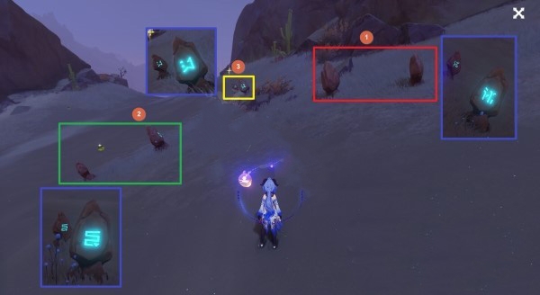 4、具体点亮顺序如下,依次用普攻攻击碑石,调整石头上的图案即可。