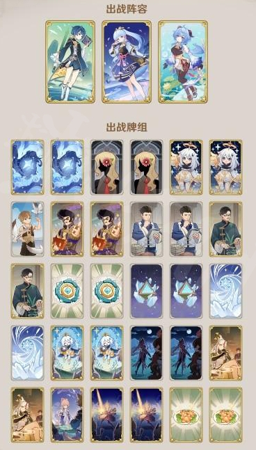 卡组玩法:这套卡组以行秋开大后,甘雨为核心进行冻结+AOE输出,最后神里绫华冰普攻+大招收割;