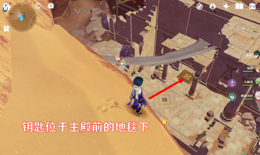 1、我们先传送到塔尼特露营地,古老的石制钥匙就在部族神殿的地毯下。