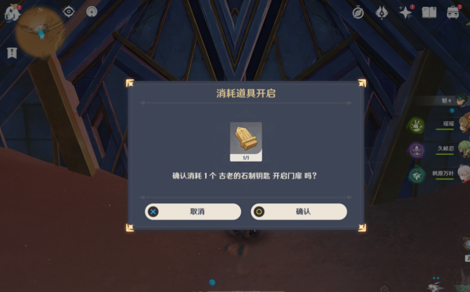 4、消耗道具古老的石制钥匙就可以开启门扉了。