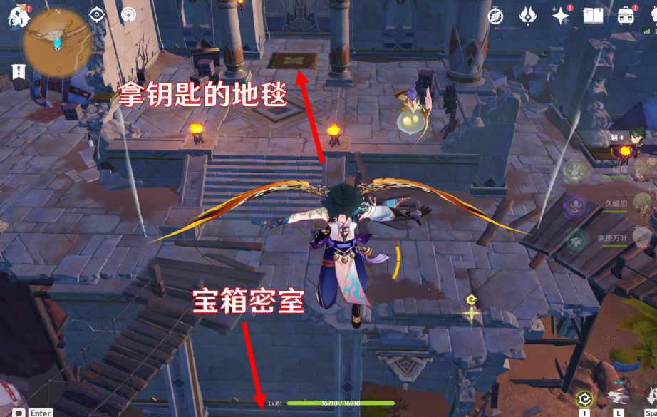 3、随后我们向下飞,底部有一个密室需要用钥匙开启。