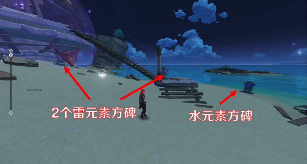 先来到丘丘人营地的大棚屋,激活3个元素方碑;