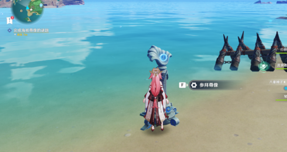 元素方碑都激活后,海边就会出现海祇尊象,我们点击参拜;