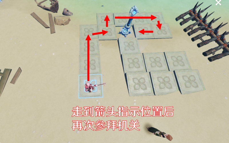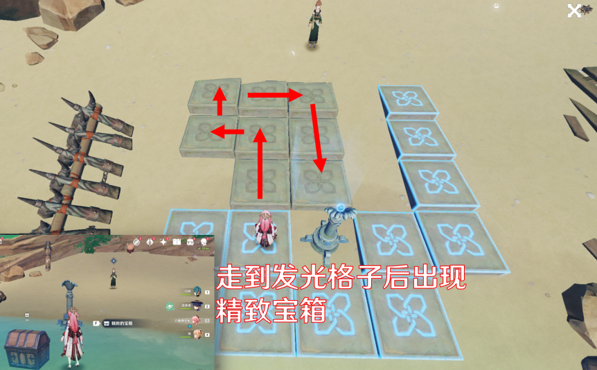 之后再沿着下图路线走,这样就完成解谜获得宝箱。