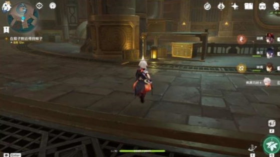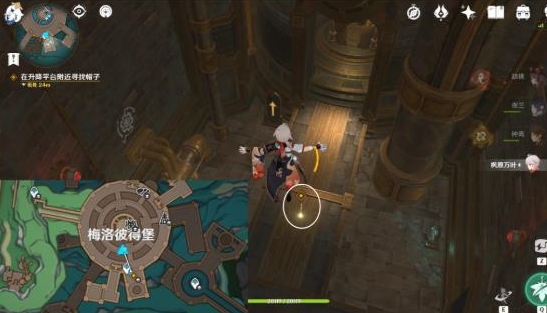 2、向地图南边走,跳下升降平台找帽子。