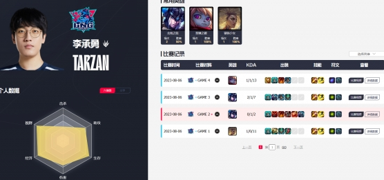 3、打野tarzan,来自中国,常用英雄:猪妹、波比、芮尔。