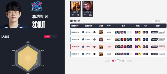 5、中单scout,来自韩国,常用英雄:阿兹尔、杰斯。