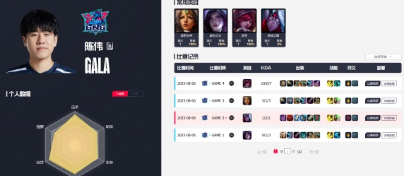 6、ADCgala,来自中国,常用英雄:轮子妈、维鲁斯、霞。