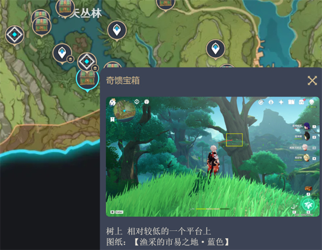 奇馈宝箱在树上的平台。