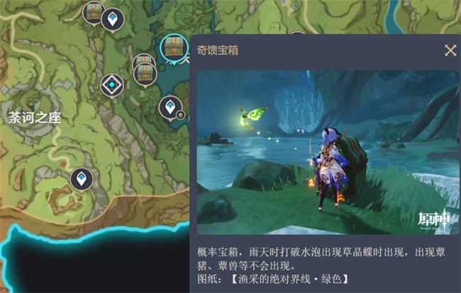 这个奇馈宝箱需要在雨天的水天丛林打泡泡出现。