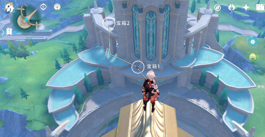 4、再根据图上的指引就能前往歌剧院顶部的水池获得宝箱啦,一共有两个宝箱噢。