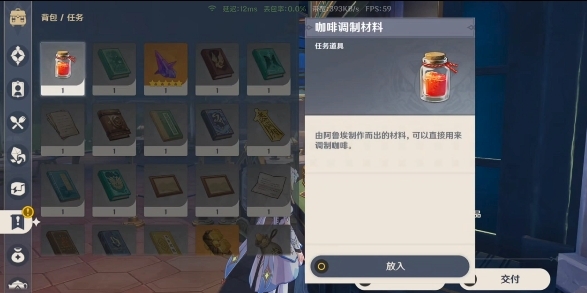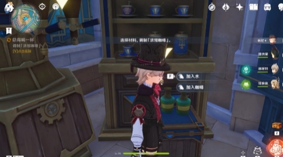 4、再次和店主对话,制作一杯新奇的咖啡,材料随意选择即可。