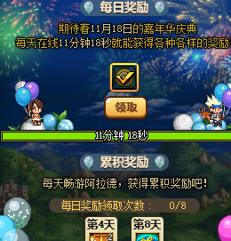 11月18日嘉年华预热活动,通过在线时长获得道具,但是都很没用。