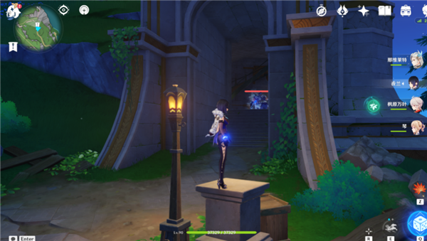 击败愚人众后我们上楼到第3层至第4层的中间,发现有屏障挡住了我们的路;