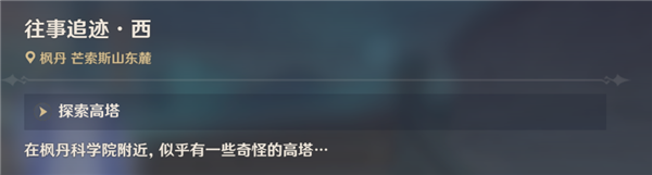 1、往事追迹任务需要我们解开西、北、南三座高塔的解谜,其中南方的高塔还需要触发一段对话才能接取。